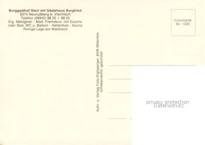 Neunussberg Burggasthof Sterr Gaststube Hallenbad Neunussberg postalisch nicht gelaufen nach 1965 Erhaltung siehe scans [WerneD78] WernPID7