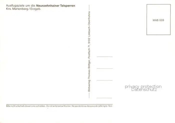 Neunzehnhain Ausflugsziele um die Neunzehnhainer Talsperren Gaststaetten Neunzehnhain postalisch nicht gelaufen nach 1965 Erhaltung siehe scans [FriedD77] Frierer