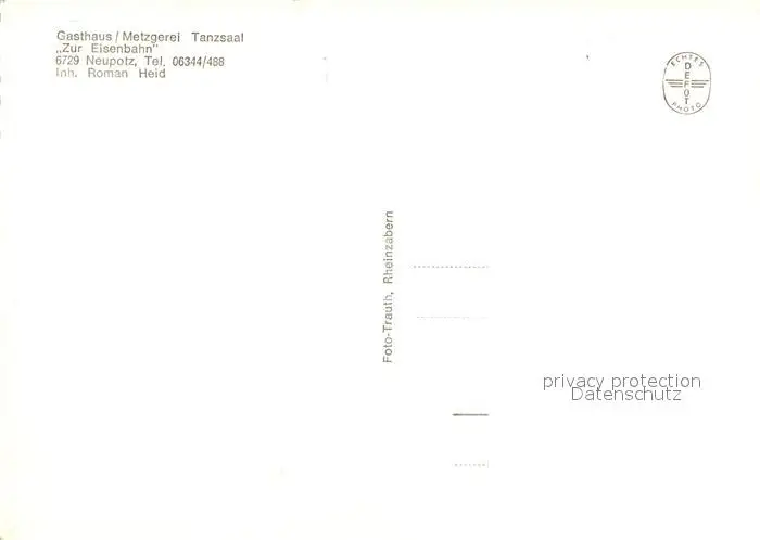 Neupotz Gasthaus zur Eisenbahn Gastraeume Neupotz postalisch nicht gelaufen 1921-1965 Erhaltung siehe scans [WerneD78] WernPID7