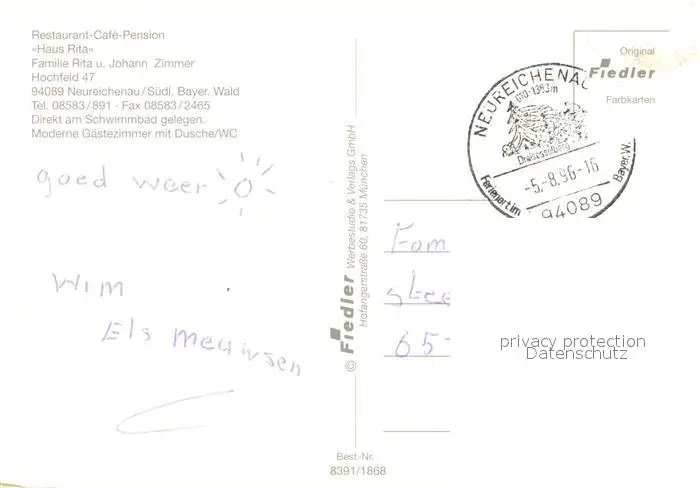 Neureichenau Restaurant Cafe Pension Haus Rita Gaststube Langlaufloipe Panorama Neureichenau postalisch gelaufen 1996 Erhaltung siehe scans [WerneD78] WernPID7