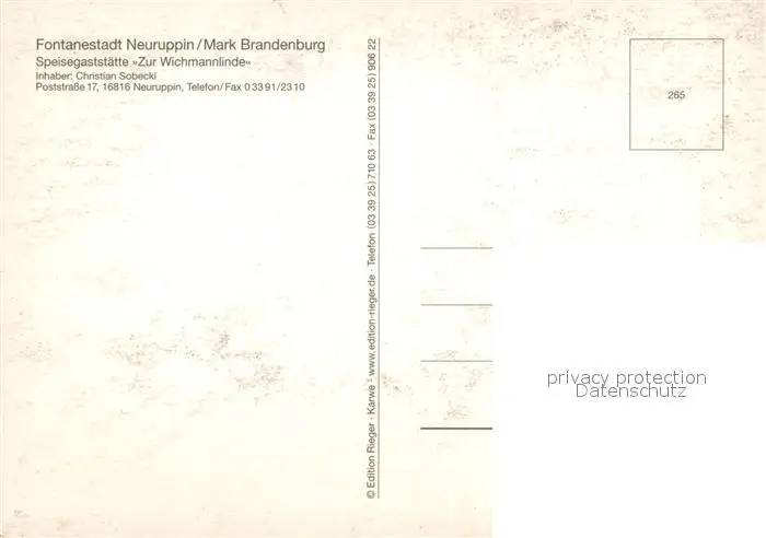 Neuruppin Gaststaette Zur Wichmannlinde Aussenansicht Terrasse Neuruppin postalisch nicht gelaufen nach 1965 Erhaltung siehe scans [LiesaD40] LiesID40