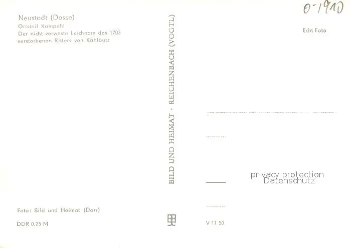 Neustadt_Dosse Kampehl 700 j?hrige Wehrkirche mit nicht verwestem Leichnam des 1703 verstorbenen Ritters von Kahlbutz Neustadt_Dosse postalisch nicht gelaufen nach 1965 Erhaltung siehe scans [LiesaD40] LiesID40