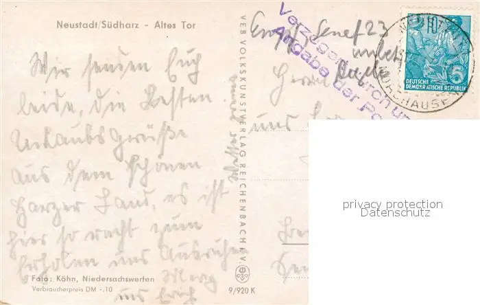 Neustadt_Harz Altes Tor Neustadt_Harz postalisch gelaufen 1956 Erhaltung siehe scans [FriedD77] Frierer