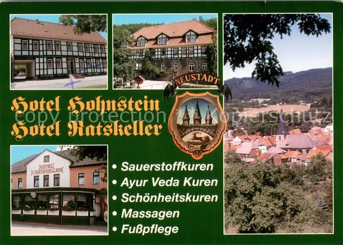AK / Ansichtskarte Neustadt_Harz Bettenhaus Hotel Hohnstein Hotel Ratskeller Panorama Neustadt_Harz