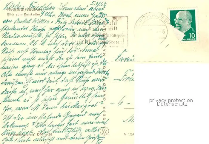 Neustadt_Harz Kategorie Alte Ansichtskarten Postkarten bx52630 Neustadt_Harz Blick zum Ratskeller Fachwerkhaeuser Kirchturm Neustadt_Harz postalisch gelaufen 1964 Erhaltung siehe scans [FriedD77]