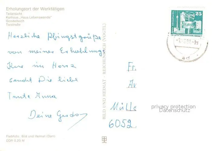Neustadt_Harz Teilansicht Luftkurort Kurhaus Haus Lebenswende Gondelteich Torstrasse Neustadt_Harz postalisch gelaufen 1981 Erhaltung siehe scans [FriedD77] Frierer