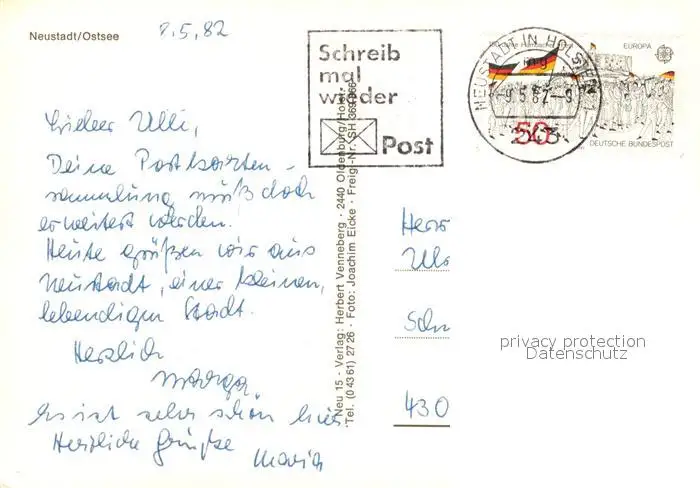 Neustadt_Holstein Fliegeraufnahme Neustadt_Holstein postalisch gelaufen 1982 Erhaltung siehe scans [WerneD78] WernPID7