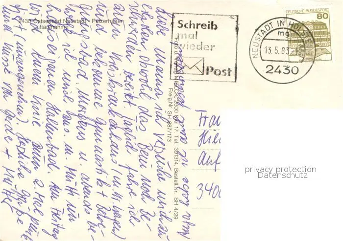 Neustadt_Holstein Fliegeraufnahme Panorama Neustadt_Holstein postalisch gelaufen 1983 Erhaltung siehe scans [LiesaD40] LiesID40