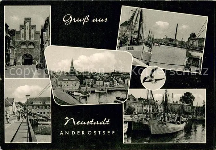 Neustadt_Holstein Kremper Tor Hafen Fischkutter Stadtpanorama Neustadt_Holstein postalisch nicht gelaufen 1921-1965 Erhaltung siehe scans [FriedD77] Frierer