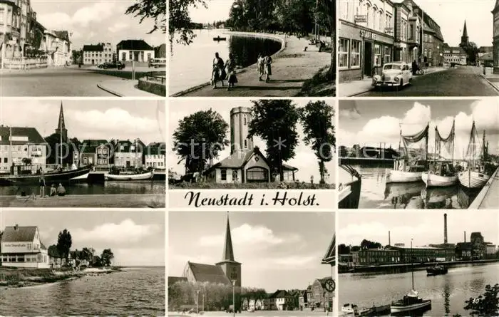 AK / Ansichtskarte Neustadt_Holstein Ortsansichten Hafen Kirche Neustadt_Holstein