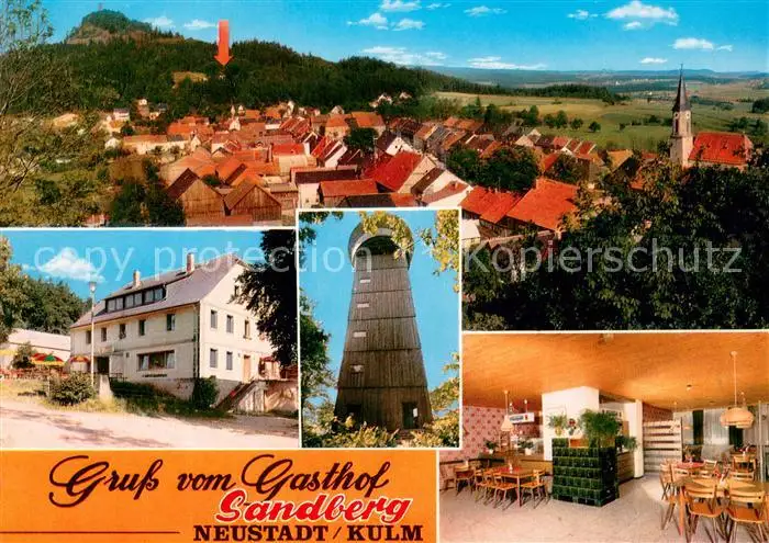 AK / Ansichtskarte Neustadt_Kulm Gasthof Sandberg Restaurant Aussichtsturm Ortsansicht mit Kirche Neustadt_Kulm
