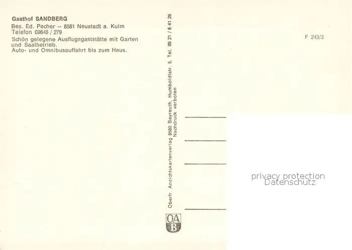 Neustadt_Kulm Gasthof Sandberg Restaurant Aussichtsturm Ortsansicht mit Kirche Neustadt_Kulm postalisch nicht gelaufen nach 1965 Erhaltung siehe scans [FriedD77] Frierer