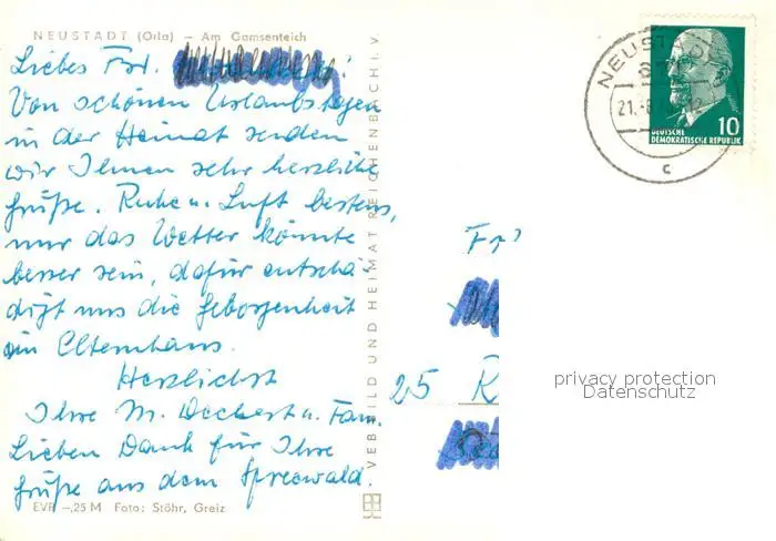 Neustadt_Orla Am Gamsenteich Neustadt_Orla postalisch gelaufen 1975 Erhaltung siehe scans [WerneD78] WernPID7
