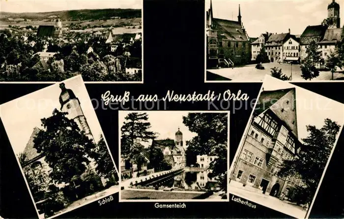 Neustadt_Orla Gamsenteich Lutherhaus Schloss Neustadt_Orla postalisch gelaufen 1921-1965 Erhaltung siehe scans [KathaD81] Kathoren