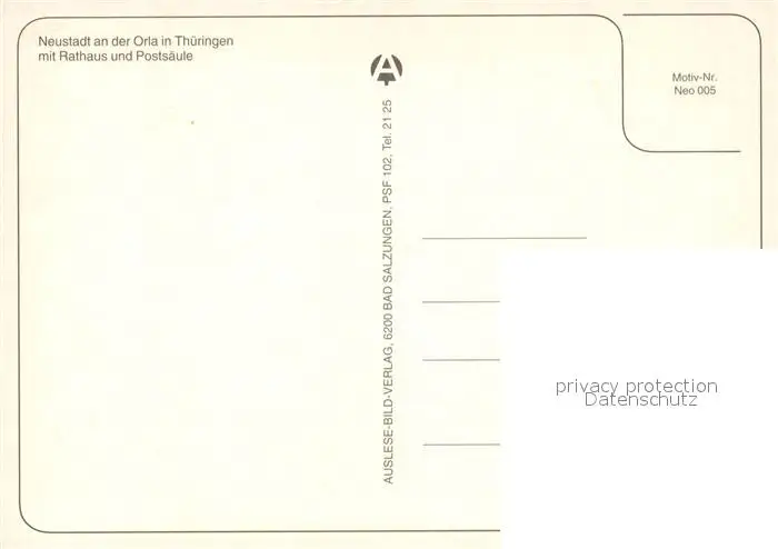 Neustadt_Orla Ortsmotive Innenstadt Rathaus Postsaeule Wappen Neustadt_Orla postalisch nicht gelaufen nach 1965 Erhaltung siehe scans [FriedD77] Frierer