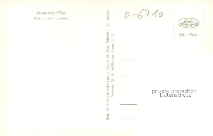 Neustadt_Orla Panorama Blick vom Centbaumweg Neustadt_Orla postalisch nicht gelaufen 1954 Erhaltung siehe scans [FriedD77] Frierer