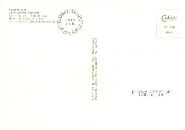 Neustadt_Schwarzwald Berggasthaus Fuerstenberg-Rasthaus auf dem Hochfirst Fliegeraufnahme Neustadt_Schwarzwald postalisch nicht gelaufen nach 1965 Erhaltung siehe scans [WerneD78] WernPID7
