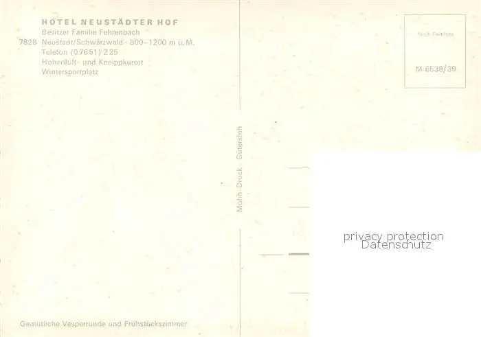 Neustadt_Schwarzwald Hotel Neustaedter Hof Restaurant Neustadt_Schwarzwald postalisch nicht gelaufen nach 1965 Erhaltung siehe scans [FriedD77] Frierer