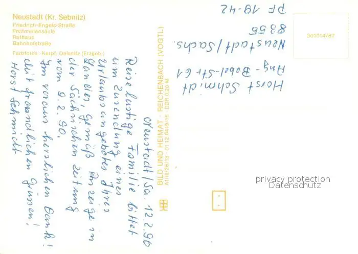 Neustadt_Sebnitz Friedrich Engels Strasse Postmeilensaeule Rathaus Bahnhofstrasse Neustadt_Sebnitz postalisch nicht gelaufen nach 1965 Erhaltung siehe scans [WerneD78] WernPID7