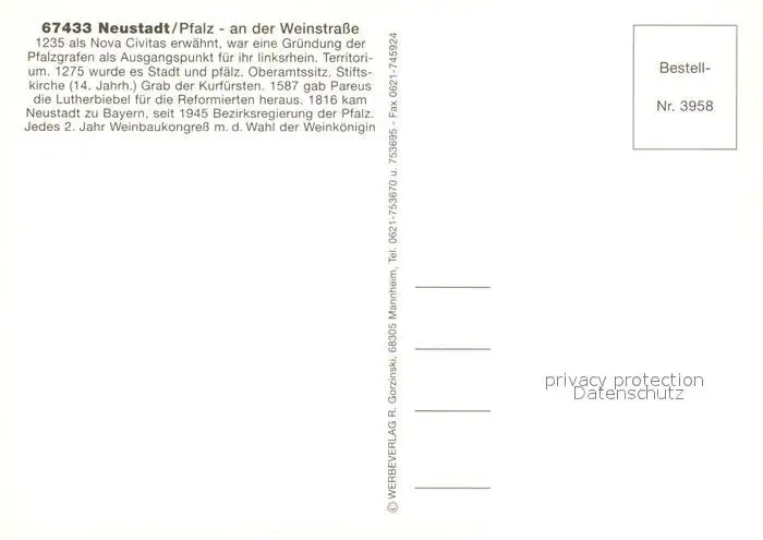 Neustadt_Weinstrasse Stiftskirche 14. Jhdt. Neustadt_Weinstrasse postalisch nicht gelaufen nach 1965 Erhaltung siehe scans [FriedD77] Frierer