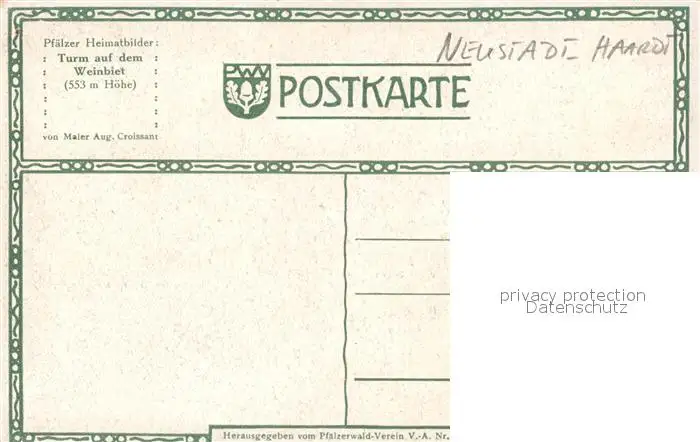 Neustadt_Weinstrasse Kategorie Alte Ansichtskarten Postkarten bx74256 Neustadt_Weinstrasse Turm auf dem Weinbiet K?nstlerkarte August Croissant Neustadt_Weinstrasse postalisch nicht gelaufen Erhaltung siehe scans [PaolaD17]