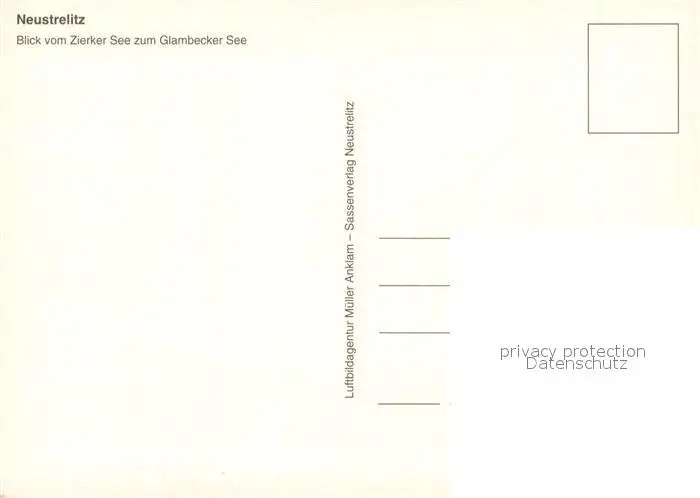 Neustrelitz Fliegeraufnahme mit Zierker See und Glambecker See Neustrelitz postalisch nicht gelaufen nach 1965 Erhaltung siehe scans [WerneD78] WernPID7