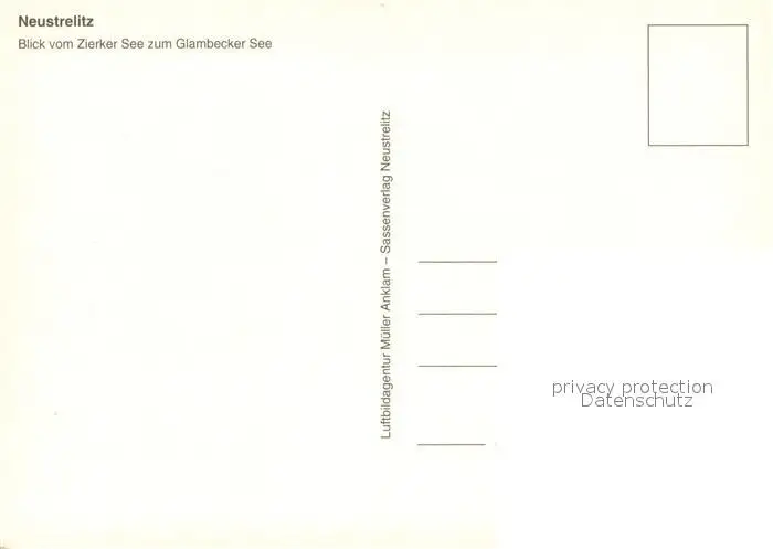 Neustrelitz Fliegeraufnahme mit Zierker See und Glambecker See Neustrelitz postalisch nicht gelaufen nach 1965 Erhaltung siehe scans [WerneD78] WernPID7