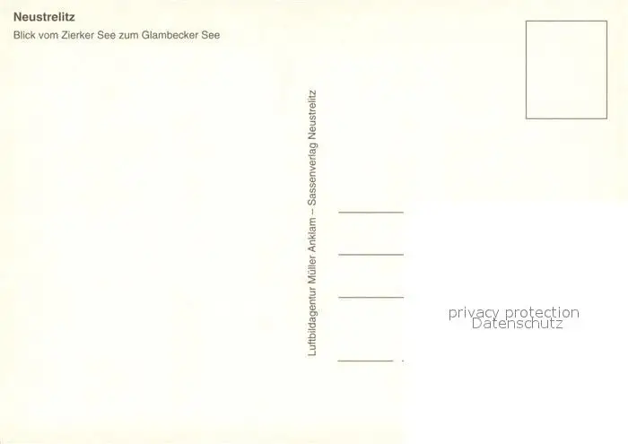 Neustrelitz Fliegeraufnahme mit Zierker See und Glambecker See Neustrelitz postalisch nicht gelaufen nach 1965 Erhaltung siehe scans [WerneD78] WernPID7