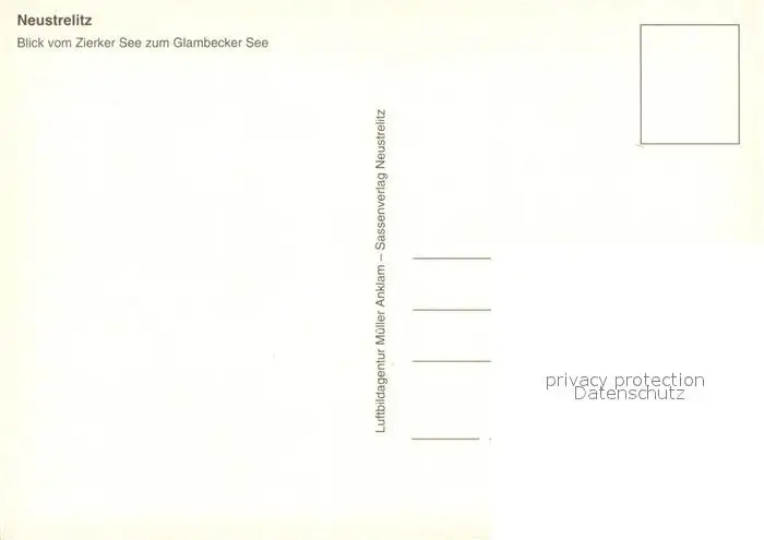 Neustrelitz Fliegeraufnahme mit Zierker See und Glambecker See Neustrelitz postalisch nicht gelaufen nach 1965 Erhaltung siehe scans [WerneD78] WernPID7