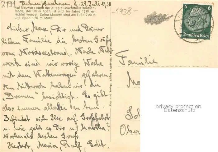 Neuwerk_Cuxhaven_Nordseebad Leuchtturm Neuwerk_Cuxhaven postalisch gelaufen 1938 Erhaltung siehe scans [LiesaD40] LiesID40