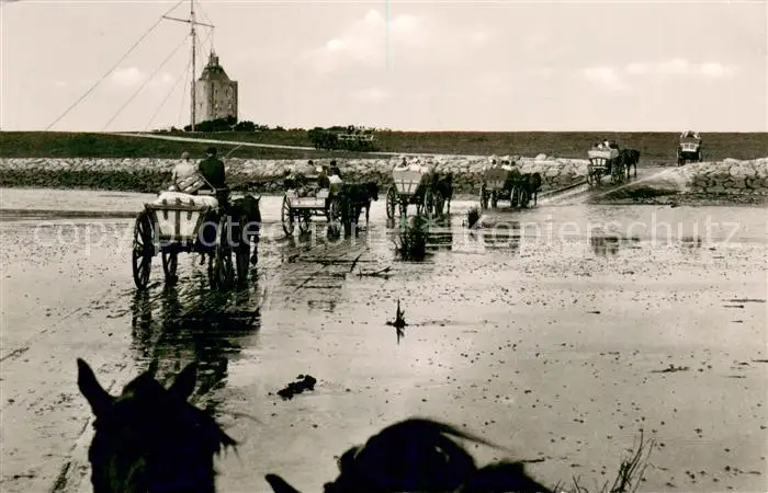 AK / Ansichtskarte Neuwerk_Cuxhaven_Nordseebad Nordseeheilbad Insel Ankunft der Wattwagen von Duhnen Neuwerk_Cuxhaven