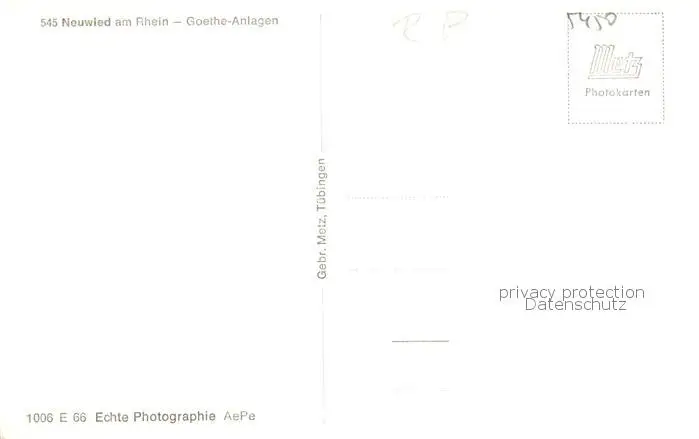 Neuwied_Rhein Goethe Anlagen Neuwied Rhein postalisch nicht gelaufen 1921-1965 Erhaltung siehe scans [WerneD78] WernPID7