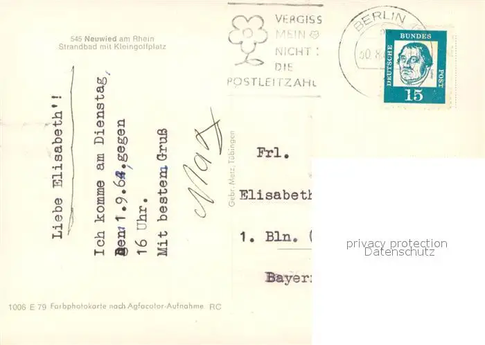Neuwied Rhein Kategorie Alte Ansichtskarten Postkarten bx89740 Neuwied_Rhein Strandbad mit Kleingolfplatz Neuwied Rhein postalisch gelaufen 1964 Erhaltung siehe scans [FriedD77]