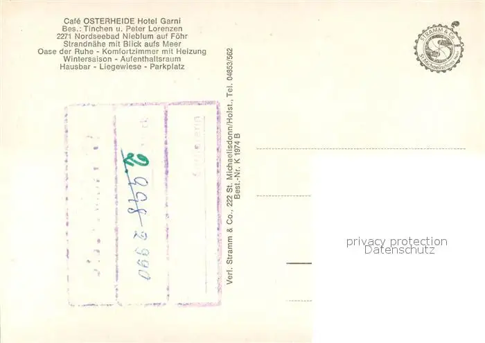 Nieblum Cafe Osterheide Hotel Garni Nieblum postalisch nicht gelaufen nach 1965 Erhaltung siehe scans [LiesaD40] LiesID40