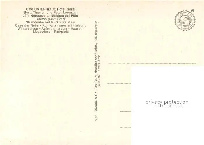 Nieblum Cafe Osterheide Hotel Garni Nieblum postalisch nicht gelaufen nach 1965 Erhaltung siehe scans [LiesaD40] LiesID40