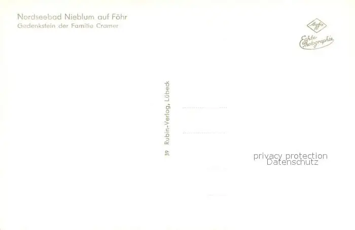 Nieblum Gedenkstein der Familie Cramer Nieblum postalisch nicht gelaufen 1921-1965 Erhaltung siehe scans [WerneD78] WernPID7