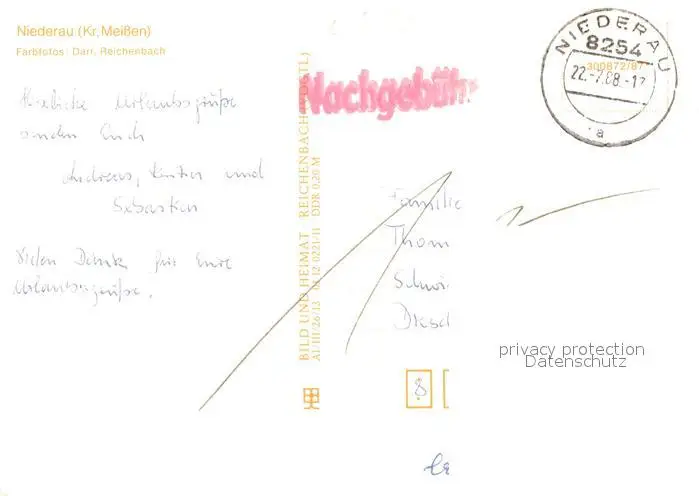 Niederau_Meissen Waldbad Oberau Bungalows Niederau Meissen postalisch gelaufen 1988 Erhaltung siehe scans [WerneD78] WernPID7