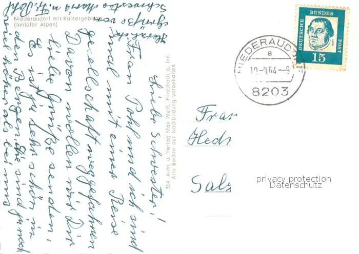 Niederaudorf Ortsansicht mit Kirche Blick auf das Kaisergebirge Niederaudorf postalisch gelaufen 1964 Erhaltung siehe scans [FriedD77] Frierer