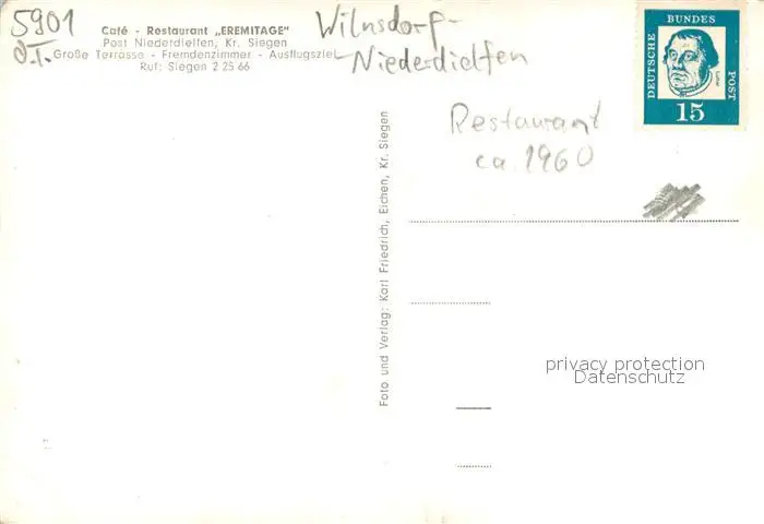Niederdielfen Cafe-Restaurant Eremitage Innen und Aussen Niederdielfen postalisch nicht gelaufen 1960 Erhaltung siehe scans [LiesaD40] LiesID40