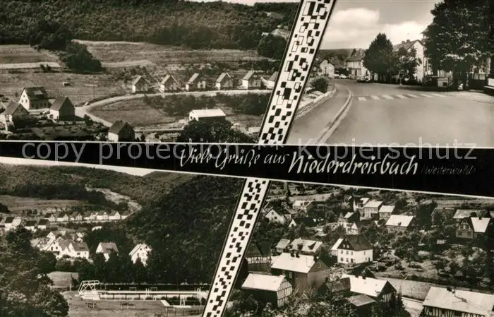 AK / Ansichtskarte Niederdreisbach Schwimmbad Panorama Gasthaus Niederdreisbach