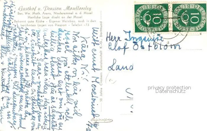 Niederemmel Kategorie Alte Ansichtskarten Postkarten bx89669 Niederemmel Gasthof Pension Moselloreley Niederemmel postalisch gelaufen 1952 Erhaltung siehe scans [FriedD77]