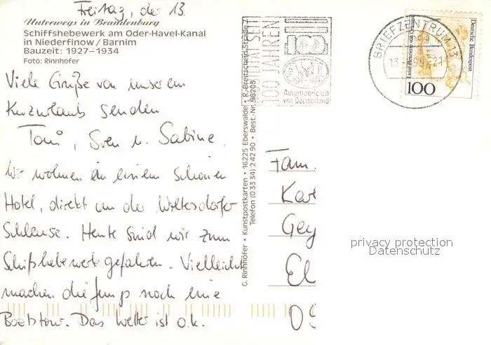 Niederfinow Schiffshebewerk Niederfinow postalisch gelaufen 1999 Fliegeraufnahme Erhaltung siehe scans [FriedD77] Fliegeraufnahme Frierer