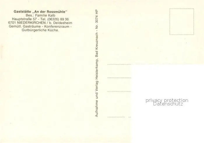 Niederkirchen_Deidesheim Gaststaette An der Rossmuehle Gastraeume Niederkirchen Deidesheim postalisch nicht gelaufen nach 1965 Erhaltung siehe scans [WerneD78] WernPID7
