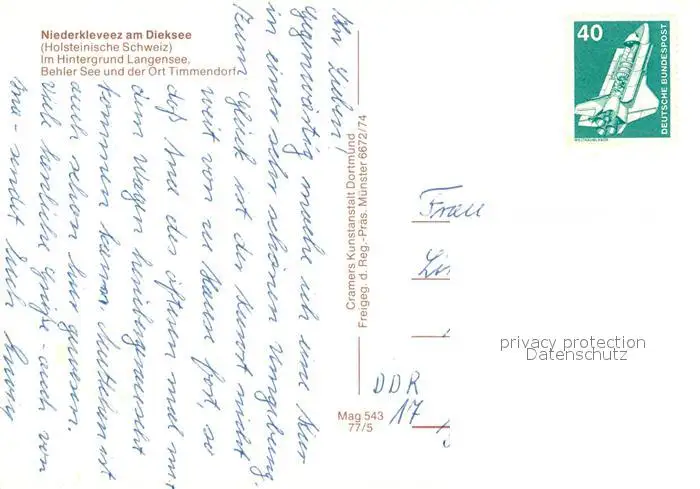 Niederkleveez Dieksee Langensee Behler See Timmendorf Naturpark Holsteinische Schweiz Fliegeraufnahme Niederkleveez postalisch nicht gelaufen 1977 Erhaltung siehe scans [FriedD77] Frierer