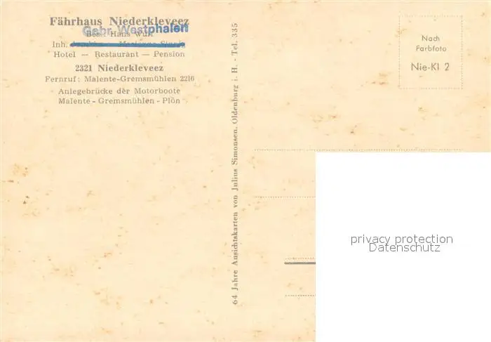Niederkleveez Faehrhaus Niederkleveez Hotel Restaurant Pension Niederkleveez postalisch nicht gelaufen nach 1965 Erhaltung siehe scans [WerneD78] WernPID7