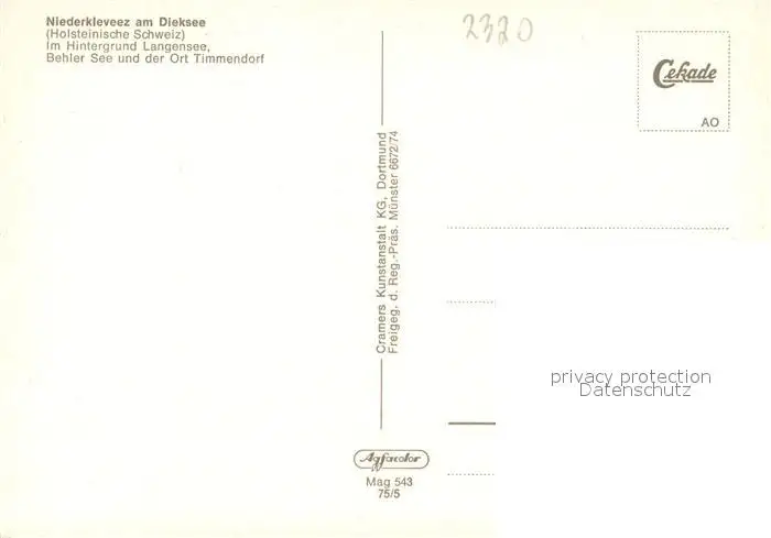 Niederkleveez Fliegeraufnahme Langensee Behler-See Timmendorf Niederkleveez postalisch nicht gelaufen nach 1965 Erhaltung siehe scans [LiesaD40] LiesID40
