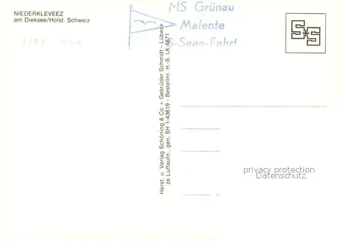Niederkleveez mit Dieksee Naturpark Holsteinische Schweiz Fliegeraufnahme Niederkleveez postalisch nicht gelaufen 1983 Erhaltung siehe scans [FriedD77] Frierer