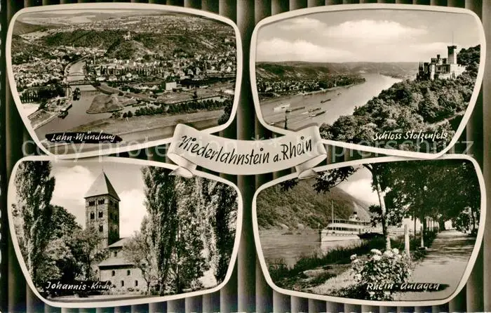 Niederlahnstein Lahn Muendung Schloss Stolzenfels Johannis Kirche Niederlahnstein postalisch gelaufen 1960 Erhaltung siehe scans [KathaD81] Kathoren