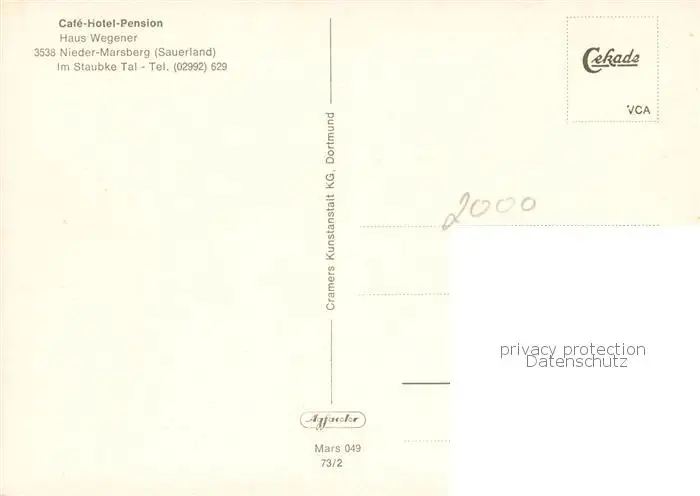Niedermarsberg Cafe Hotel Haus Wegener Niedermarsberg postalisch nicht gelaufen nach 1965 Erhaltung siehe scans [WerneD78] WernPID7