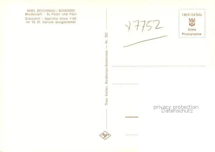 Niederzell_Reichenau St Peter und Paul Kirche Dreischiffbasilika Innenansicht Niederzell Reichenau postalisch nicht gelaufen 1921-1965 Erhaltung siehe scans [FriedD77] Frierer